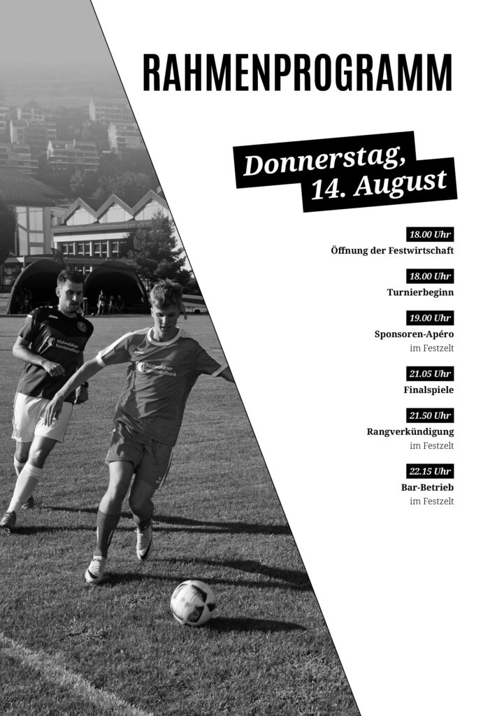 Dorfturnier 2025 Das 48. Dorfturnier findet am Donnerstag, 14. und Freitag, 15. August 2025 (Mariä Himmelfahrt) statt. Spielplan Gruppeneinteilung_Spielplan_2025Herunterladen Rahmenprogramm